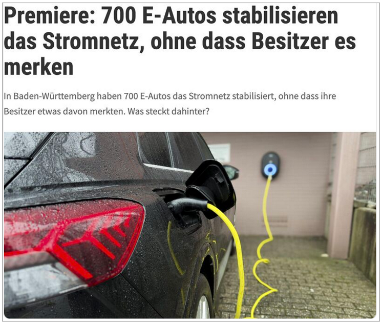 - E-Auto-Batterien als netzdienlichen Speicher nutzen: Ein Pilotversuch durch TransnetBW und Octopus Energy mit lediglich 700 E-Autos hat bewiesen, dass diese dezentralen, mobilen Batteriespeicher netzdienlich in Redispatch-Prozesse integriert werden können. „Bereits eine Million Elektrofahrzeuge könnten demnach mehrere Gigawattstunden Flexibilität pro Tag bereitstellen und damit einen relevanten Anteil des heutigen Redispatch-Bedarfs in Deutschland abdecken.“ [43]