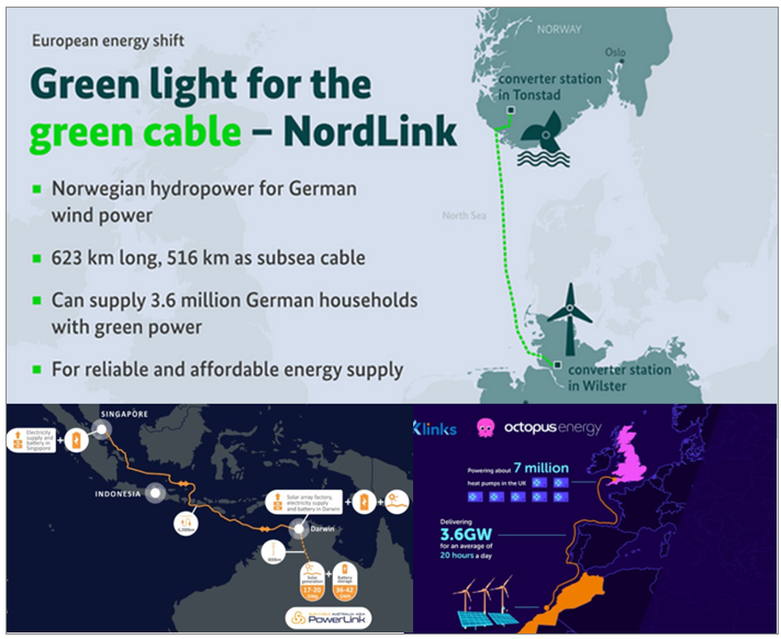Weltweit vernetzen sich Länder über solche Unterseekabel: Deutschland seit längerem schon mit Norwegen (NordLink), Großprojekte wie Australien mit Singapur (PowerLink) oder Großbritannien mit Marokko (Xlinks) befinden sich in der Umsetzung.